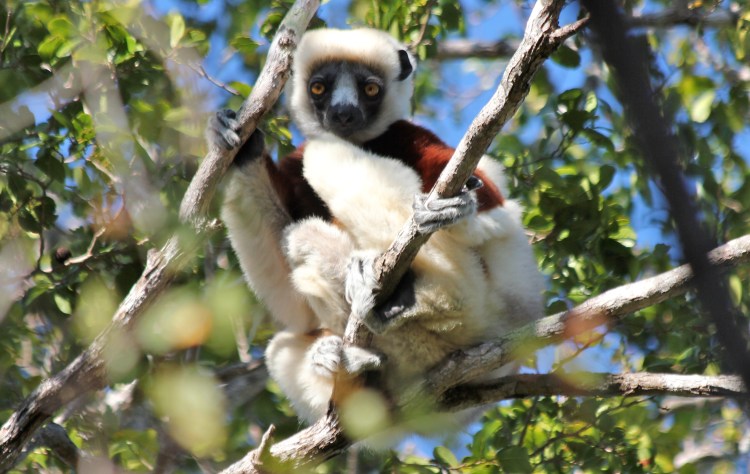 Unfortunately, like most lemurs (and in fact most of Madagascar’s fauna) all sifakas are threatened to an extent, and the Coquerel’s Sifaka is currently listed as ‘Endangered’ on IUCN’s Red List of Threatened Species. The terrifyingly rapid decimation of Madagascar’s forests for development and agriculture of course play a large part, but ironically the stronger presence of conservation science on the island has convinced many communities that there is nothing spiritual about sifakas; not only are they as tasty as any other lemur, but easier to catch. As conservation might as well not be bothered with if you can’t get the support from the locals, changing their perceptions of the sifaka whilst not intruding too heavily on their own needs and cultural values will, and is, proving an interesting challenge.