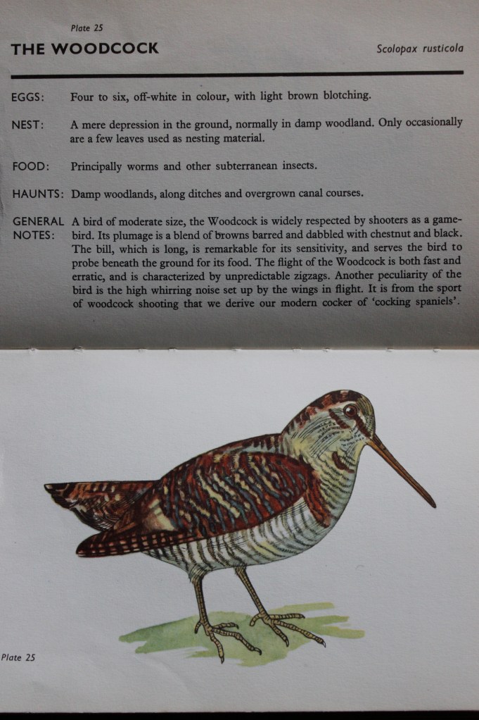 It was while walking the dog in the woods behind the garden at midday, covering the usual route. As I moved into the older part of the wood from a long stretch of clearing, a pigeon-sized brown bird flapped frantically out of the bracken at my presence, it’s wings ‘whirring’ as it flew. I often flush out pheasants accidentally this way, but this was obviously very different. It seemed more like a… Seconds later, my suspicions that this was a woodcock were confirmed when a second individual was flushed out much closer to me this time. I could see the beautifully speckled, earth-coloured markings, uncannily similar to the leaf litter it nests within. The beady eyes unusually high upon the head and the long, straight beak for probing damp woodland floors for grubs.