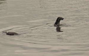 From the moment I had parked behind the Tesco, gathered my camera, tripod and binoculars and headed out to the first stretch of river, there was already one local standing by with bins asking “come to find the otters then?” And so began a hectic 20 minutes or so of rushing up the river, each time told by a photographer or dog walker “they were here about five minutes ago, then swum up that way”. As I progressed away from the town into a more wooded stretch of riverbank, I was beginning to lose hope. Until my heart jumped at the sight of a tail dipping in the water below.